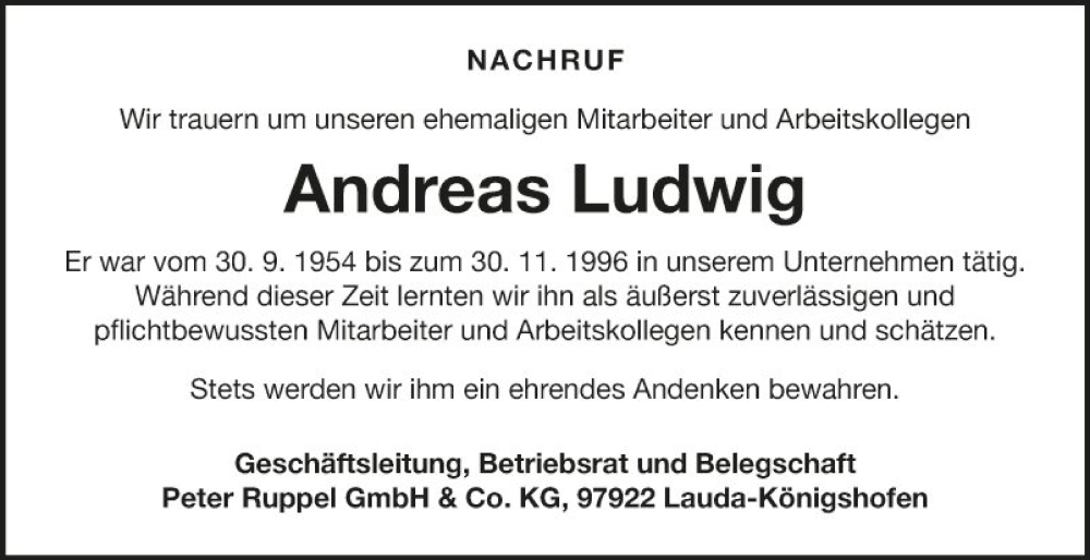 Hier finden Sie alle Traueranzeigen aus der Zeitung, die bisher für Andreas Ludwig erschienen sind. Weitere Traueranzeigen, die in der Zeitung erscheinen, werden hier ebenfalls aufgelistet
