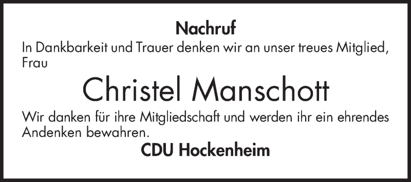 Hier finden Sie alle Traueranzeigen aus der Zeitung, die bisher für Christel Manschott erschienen sind. Weitere Traueranzeigen, die in der Zeitung erscheinen, werden hier ebenfalls aufgelistet