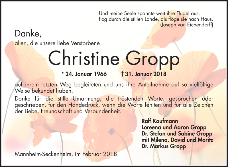 Hier finden Sie alle Traueranzeigen aus der Zeitung, die bisher für Christine Gropp erschienen sind. Weitere Traueranzeigen, die in der Zeitung erscheinen, werden hier ebenfalls aufgelistet