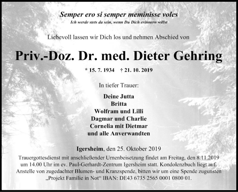 Hier finden Sie alle Traueranzeigen aus der Zeitung, die bisher für Dieter Gehring erschienen sind. Weitere Traueranzeigen, die in der Zeitung erscheinen, werden hier ebenfalls aufgelistet