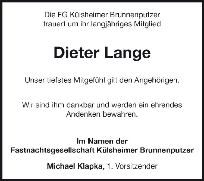 Hier finden Sie alle Traueranzeigen aus der Zeitung, die bisher für Dieter Lange erschienen sind. Weitere Traueranzeigen, die in der Zeitung erscheinen, werden hier ebenfalls aufgelistet