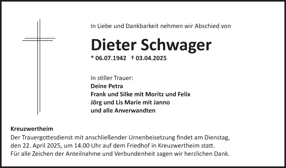 Hier finden Sie alle Traueranzeigen aus der Zeitung, die bisher für Dieter Schwager erschienen sind. Weitere Traueranzeigen, die in der Zeitung erscheinen, werden hier ebenfalls aufgelistet
