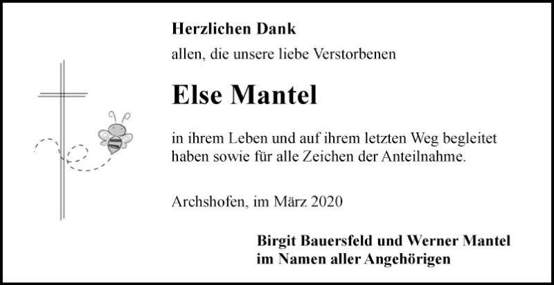 Hier finden Sie alle Traueranzeigen aus der Zeitung, die bisher für Else Mantel erschienen sind. Weitere Traueranzeigen, die in der Zeitung erscheinen, werden hier ebenfalls aufgelistet