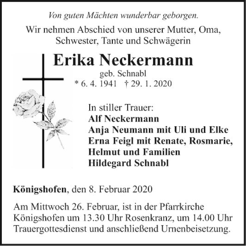 Hier finden Sie alle Traueranzeigen aus der Zeitung, die bisher für Erika Neckermann erschienen sind. Weitere Traueranzeigen, die in der Zeitung erscheinen, werden hier ebenfalls aufgelistet
