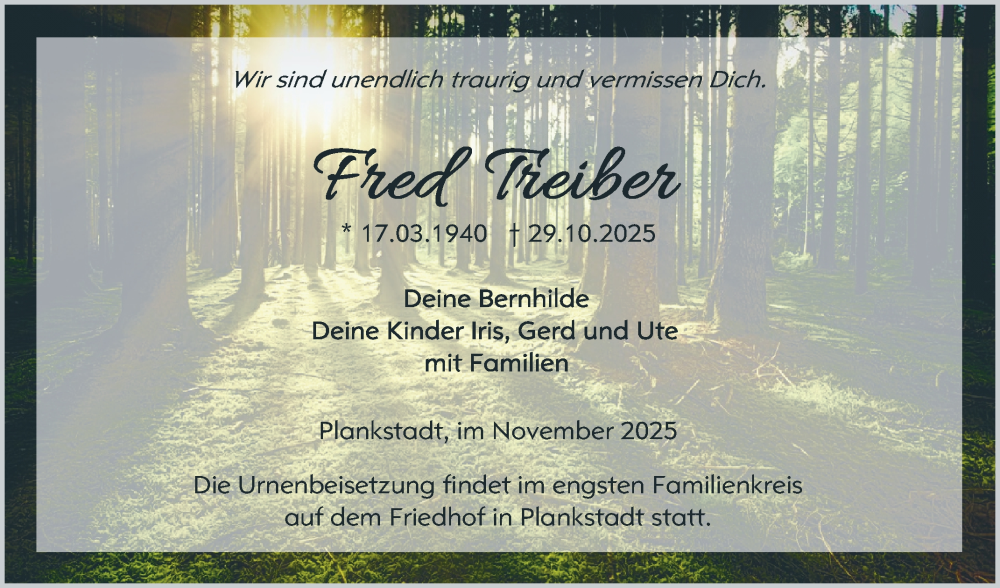 Hier finden Sie alle Traueranzeigen aus der Zeitung, die bisher für Fred Tieiber erschienen sind. Weitere Traueranzeigen, die in der Zeitung erscheinen, werden hier ebenfalls aufgelistet
