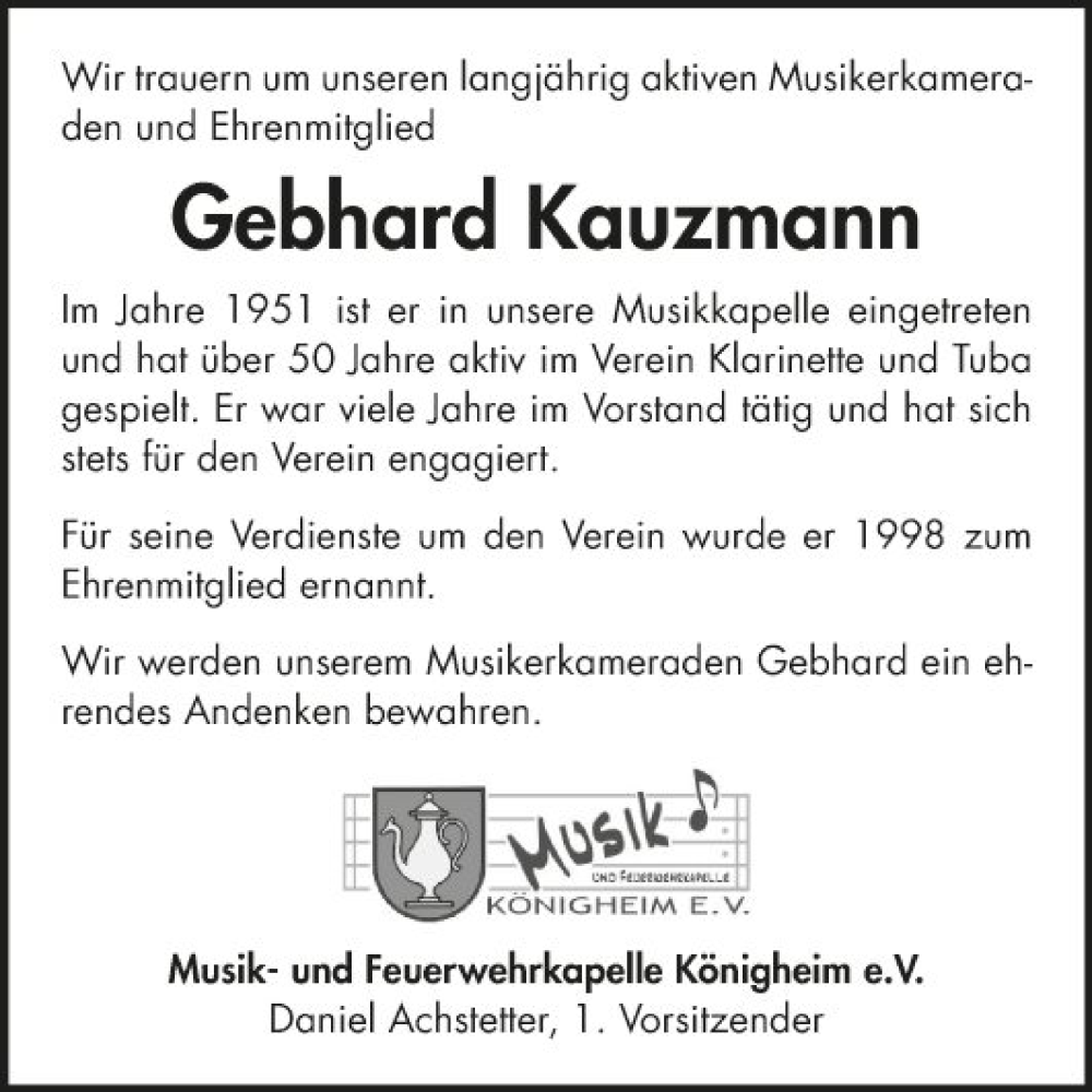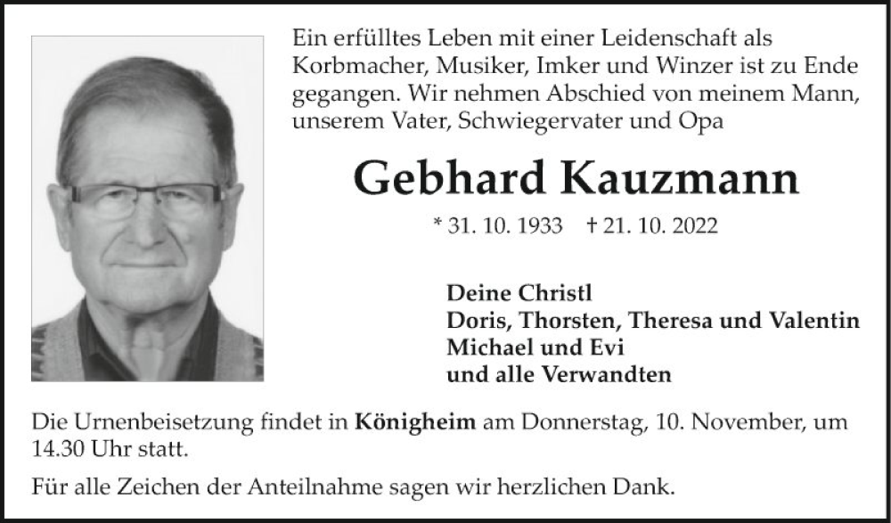 Hier finden Sie alle Traueranzeigen aus der Zeitung, die bisher für Gebhard Kauzmann erschienen sind. Weitere Traueranzeigen, die in der Zeitung erscheinen, werden hier ebenfalls aufgelistet