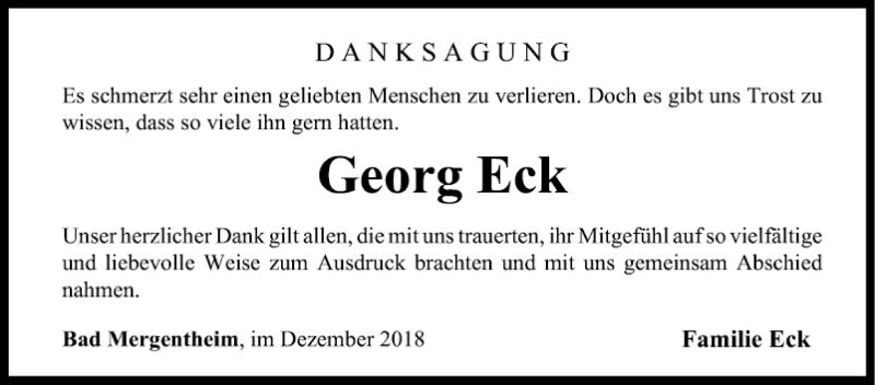 Hier finden Sie alle Traueranzeigen aus der Zeitung, die bisher für Georg Eck erschienen sind. Weitere Traueranzeigen, die in der Zeitung erscheinen, werden hier ebenfalls aufgelistet