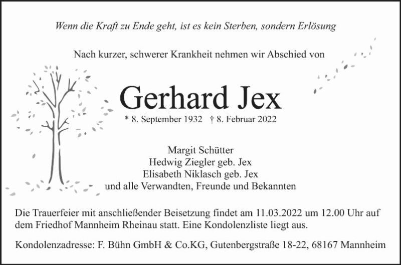 Hier finden Sie alle Traueranzeigen aus der Zeitung, die bisher für Gerhard Jex erschienen sind. Weitere Traueranzeigen, die in der Zeitung erscheinen, werden hier ebenfalls aufgelistet