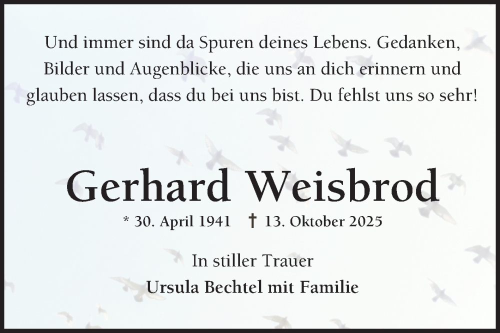 Hier finden Sie alle Traueranzeigen aus der Zeitung, die bisher für Gerhard Weisbrod erschienen sind. Weitere Traueranzeigen, die in der Zeitung erscheinen, werden hier ebenfalls aufgelistet