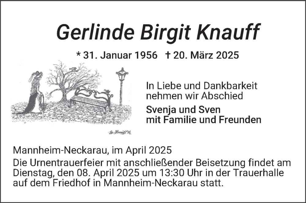 Hier finden Sie alle Traueranzeigen aus der Zeitung, die bisher für Gerlinde Knauff erschienen sind. Weitere Traueranzeigen, die in der Zeitung erscheinen, werden hier ebenfalls aufgelistet