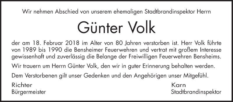 Hier finden Sie alle Traueranzeigen aus der Zeitung, die bisher für Günter Volk erschienen sind. Weitere Traueranzeigen, die in der Zeitung erscheinen, werden hier ebenfalls aufgelistet
