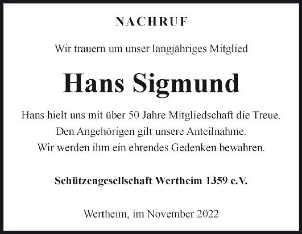 Hier finden Sie alle Traueranzeigen aus der Zeitung, die bisher für Hans Sigmund erschienen sind. Weitere Traueranzeigen, die in der Zeitung erscheinen, werden hier ebenfalls aufgelistet