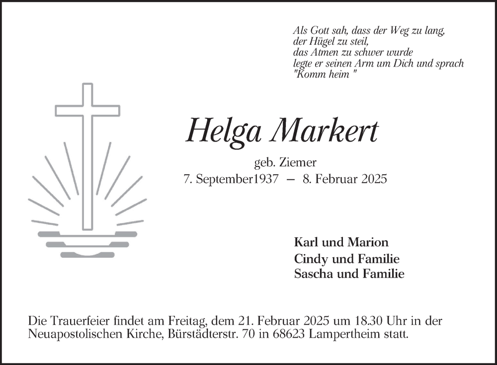 Hier finden Sie alle Traueranzeigen aus der Zeitung, die bisher für Helga Markert erschienen sind. Weitere Traueranzeigen, die in der Zeitung erscheinen, werden hier ebenfalls aufgelistet