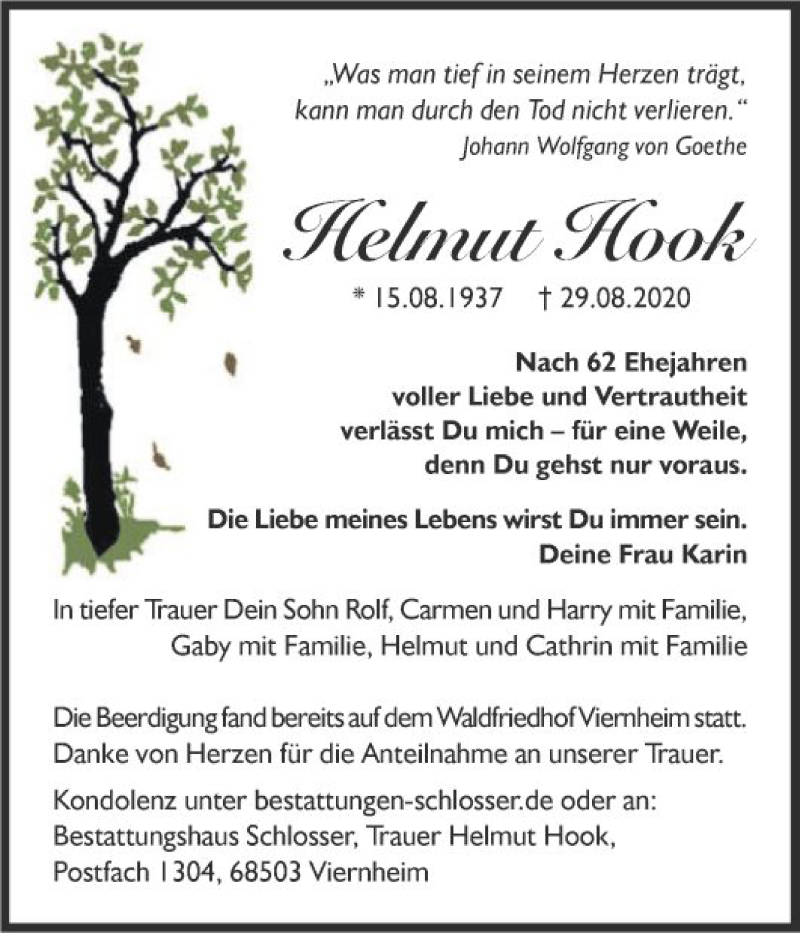 Hier finden Sie alle Traueranzeigen aus der Zeitung, die bisher für Helmut Hook erschienen sind. Weitere Traueranzeigen, die in der Zeitung erscheinen, werden hier ebenfalls aufgelistet
