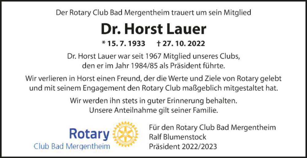 Hier finden Sie alle Traueranzeigen aus der Zeitung, die bisher für Horst Lauer erschienen sind. Weitere Traueranzeigen, die in der Zeitung erscheinen, werden hier ebenfalls aufgelistet