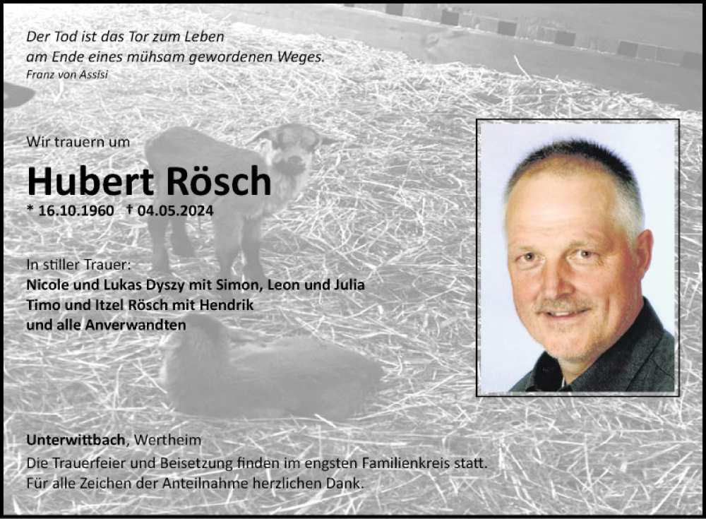 Hier finden Sie alle Traueranzeigen aus der Zeitung, die bisher für Hubert Rösch erschienen sind. Weitere Traueranzeigen, die in der Zeitung erscheinen, werden hier ebenfalls aufgelistet
