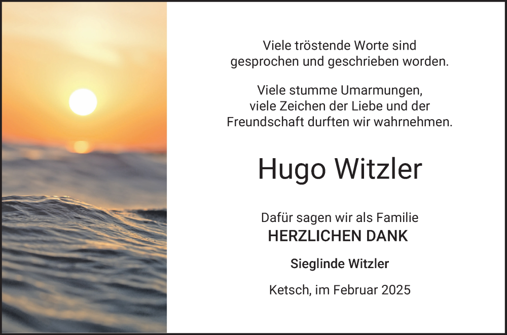 Hier finden Sie alle Traueranzeigen aus der Zeitung, die bisher für Hugo Witzler erschienen sind. Weitere Traueranzeigen, die in der Zeitung erscheinen, werden hier ebenfalls aufgelistet