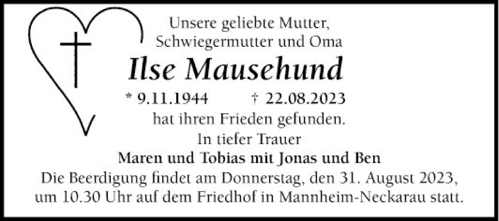 Hier finden Sie alle Traueranzeigen aus der Zeitung, die bisher für Ilse Mausehund erschienen sind. Weitere Traueranzeigen, die in der Zeitung erscheinen, werden hier ebenfalls aufgelistet