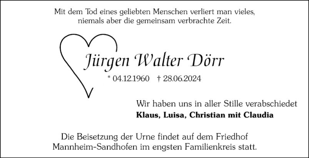 Hier finden Sie alle Traueranzeigen aus der Zeitung, die bisher für Jürgen Walter Dörr erschienen sind. Weitere Traueranzeigen, die in der Zeitung erscheinen, werden hier ebenfalls aufgelistet