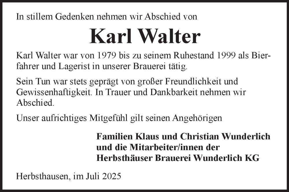Hier finden Sie alle Traueranzeigen aus der Zeitung, die bisher für Karl Walter erschienen sind. Weitere Traueranzeigen, die in der Zeitung erscheinen, werden hier ebenfalls aufgelistet