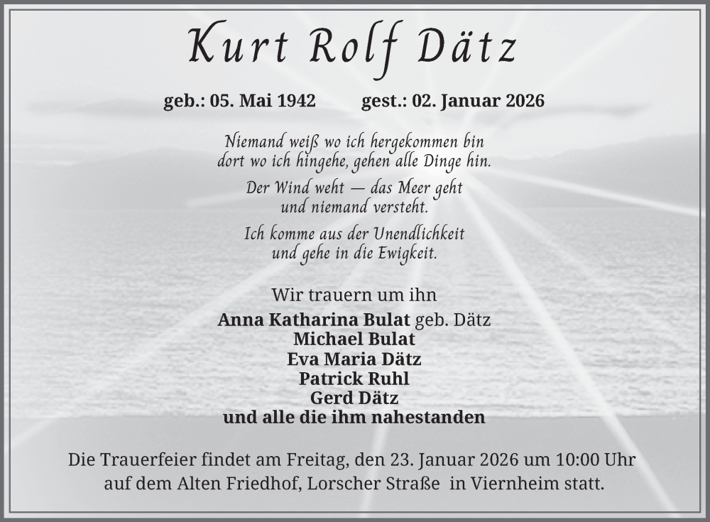 Hier finden Sie alle Traueranzeigen aus der Zeitung, die bisher für Kurt Rolf Dätz erschienen sind. Weitere Traueranzeigen, die in der Zeitung erscheinen, werden hier ebenfalls aufgelistet