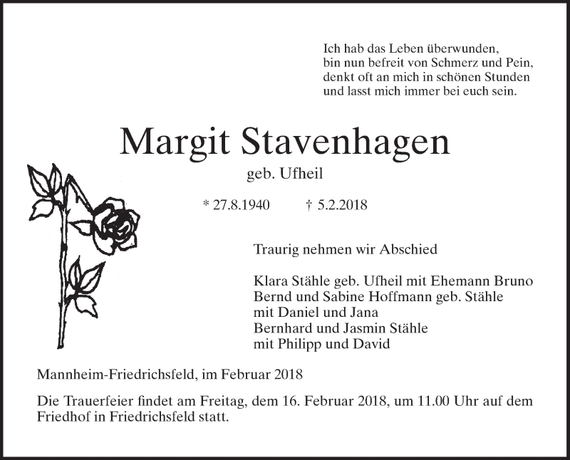 Hier finden Sie alle Traueranzeigen aus der Zeitung, die bisher für Margit Stavenhagen erschienen sind. Weitere Traueranzeigen, die in der Zeitung erscheinen, werden hier ebenfalls aufgelistet