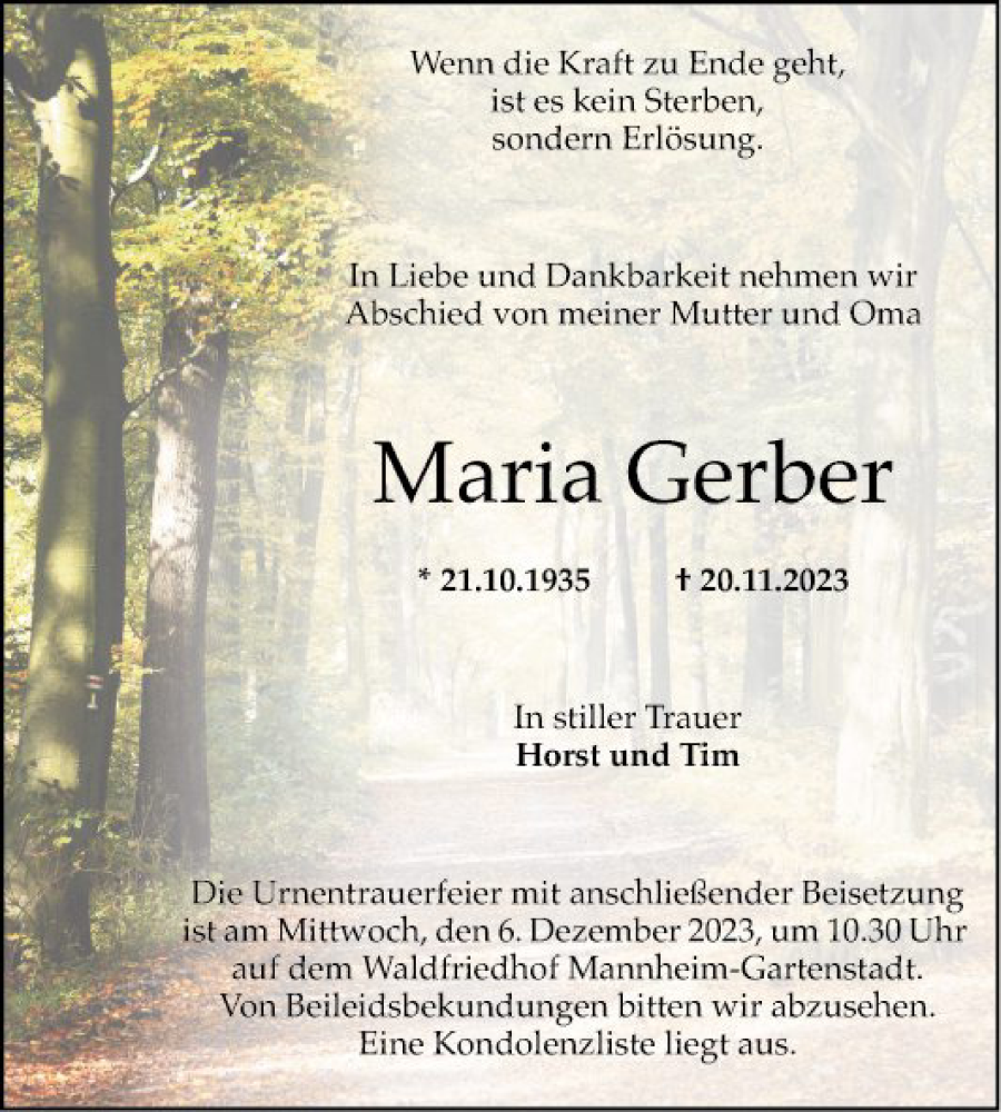 Hier finden Sie alle Traueranzeigen aus der Zeitung, die bisher für Maria Gerber erschienen sind. Weitere Traueranzeigen, die in der Zeitung erscheinen, werden hier ebenfalls aufgelistet