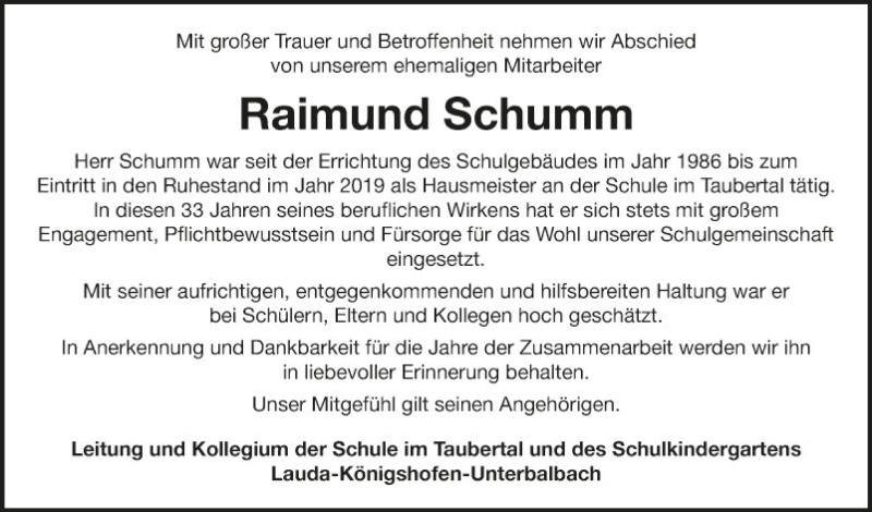Hier finden Sie alle Traueranzeigen aus der Zeitung, die bisher für Raimund Schumm erschienen sind. Weitere Traueranzeigen, die in der Zeitung erscheinen, werden hier ebenfalls aufgelistet