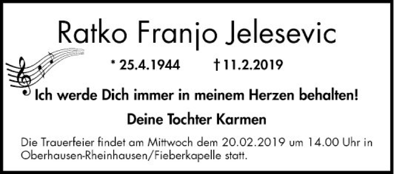 Hier finden Sie alle Traueranzeigen aus der Zeitung, die bisher für Ratko Franjo Jelesevic erschienen sind. Weitere Traueranzeigen, die in der Zeitung erscheinen, werden hier ebenfalls aufgelistet