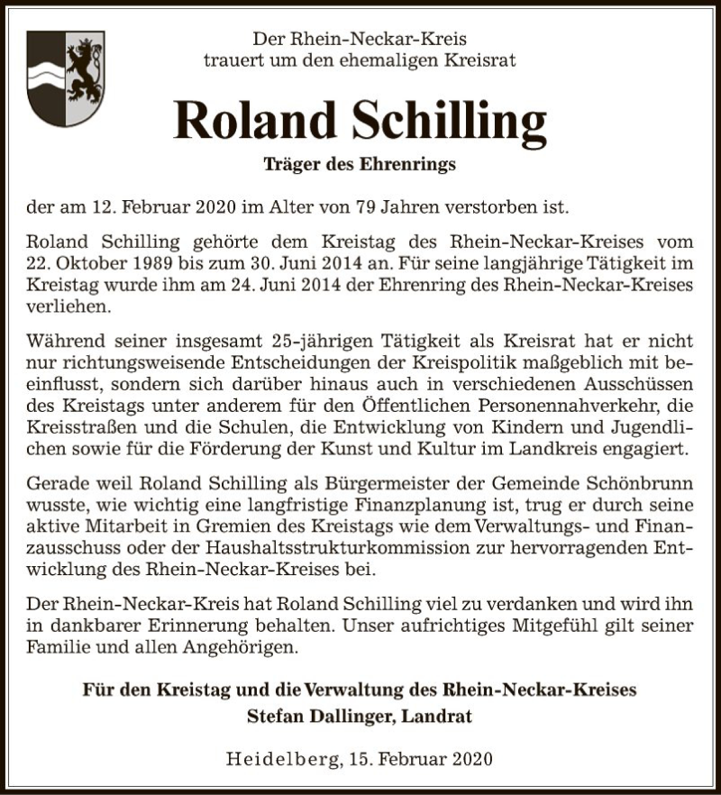Hier finden Sie alle Traueranzeigen aus der Zeitung, die bisher für Roland Schilling erschienen sind. Weitere Traueranzeigen, die in der Zeitung erscheinen, werden hier ebenfalls aufgelistet