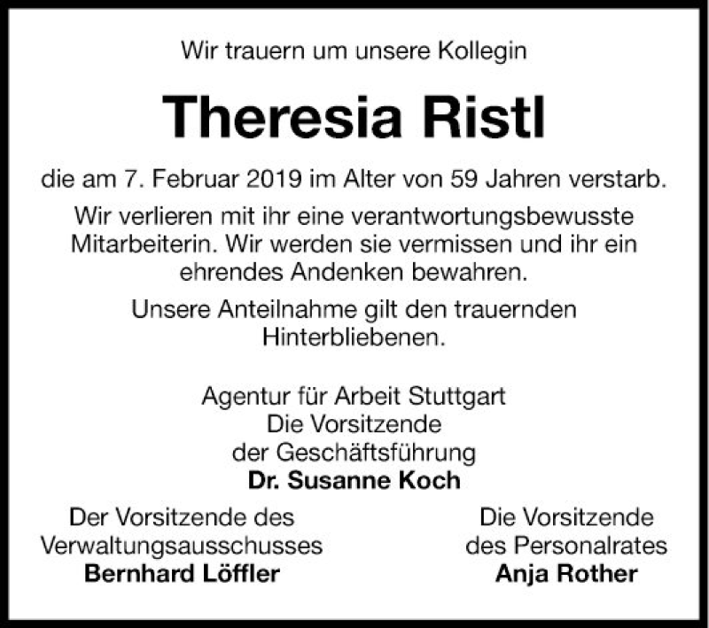 Hier finden Sie alle Traueranzeigen aus der Zeitung, die bisher für Theresia Ristl erschienen sind. Weitere Traueranzeigen, die in der Zeitung erscheinen, werden hier ebenfalls aufgelistet