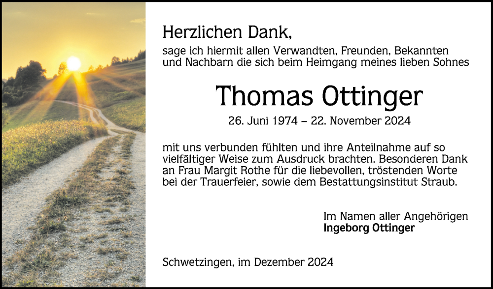 Hier finden Sie alle Traueranzeigen aus der Zeitung, die bisher für Thomas Ottinger erschienen sind. Weitere Traueranzeigen, die in der Zeitung erscheinen, werden hier ebenfalls aufgelistet