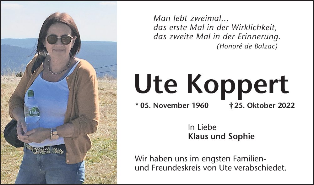 Hier finden Sie alle Traueranzeigen aus der Zeitung, die bisher für Ute Koppert erschienen sind. Weitere Traueranzeigen, die in der Zeitung erscheinen, werden hier ebenfalls aufgelistet