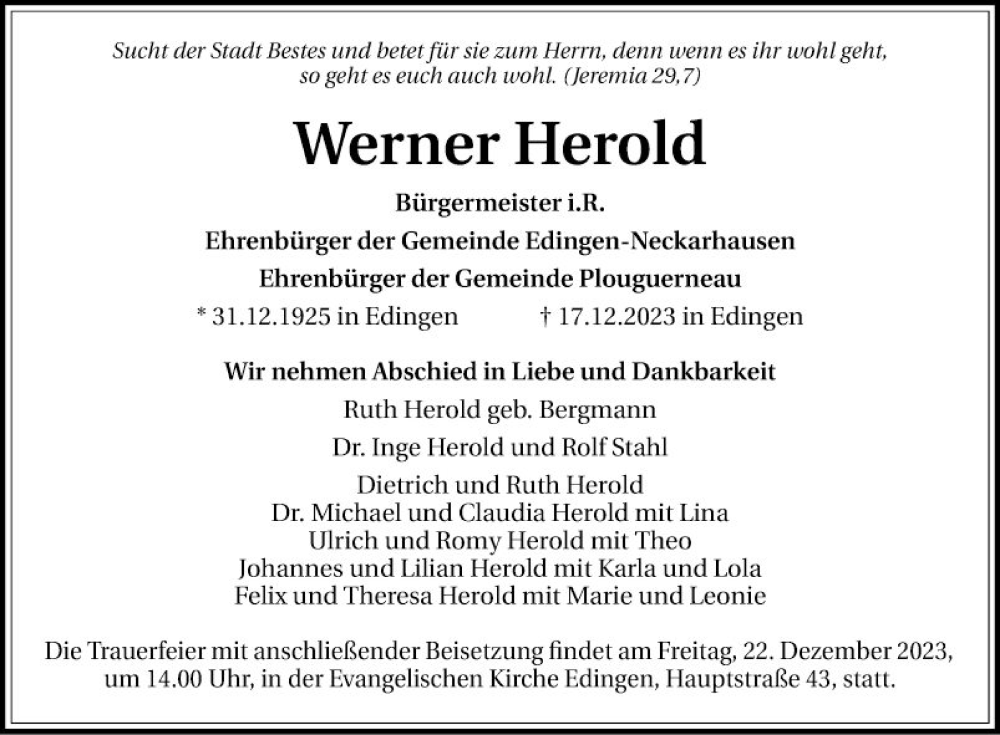 Hier finden Sie alle Traueranzeigen aus der Zeitung, die bisher für Werner Herold erschienen sind. Weitere Traueranzeigen, die in der Zeitung erscheinen, werden hier ebenfalls aufgelistet